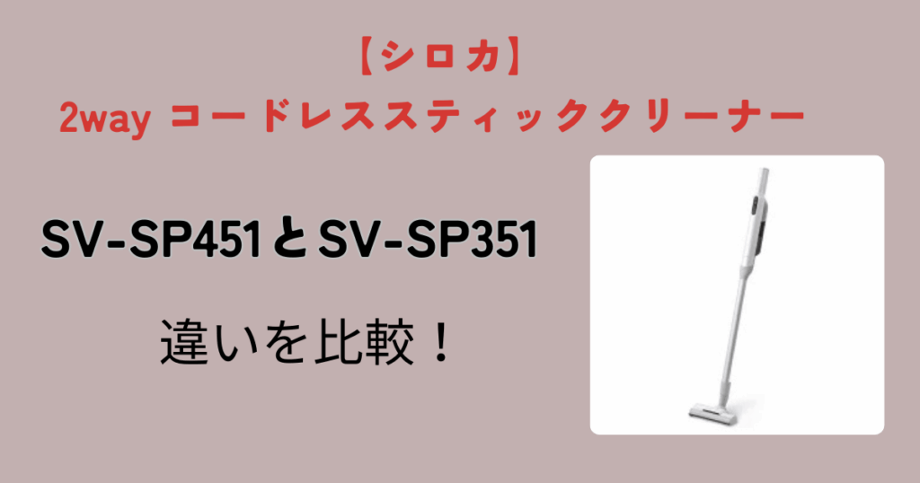 この記事では2way コードレススティッククリーナー かるピカ パワー PRO(SV-SP451)と2way コードレススティッククリーナー かるピカ パワー(SV-SP351)の違いについて解説しています。 SV-SP451とSV-SP351のどちらが良いかを、10個の項目別に比較しまし... -